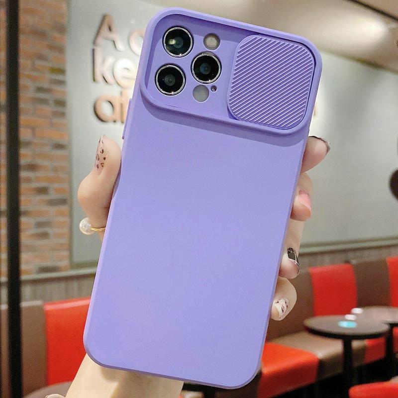 For iPhone 15 Pro Slid Camera Shield Liquid Silicone TPU Phone Case(Lavender Purple)