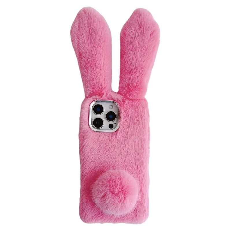 For iPhone 15 Pro Solid Color Plush Rabbit TPU Phone Case(Pink)
