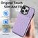 For iPhone 15 Pro Splicing Rhombic Texture Card Bag Phone Case with Long Lanyard(Purple)