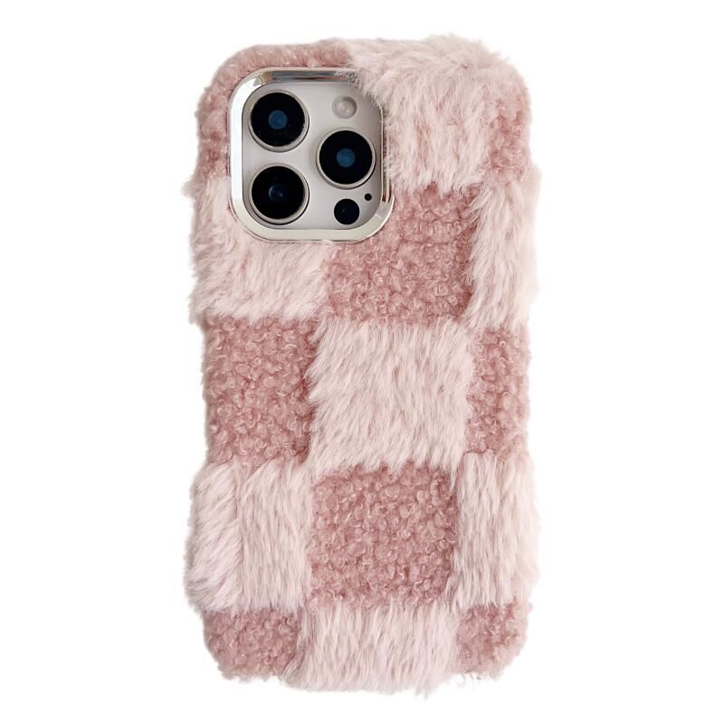 For iPhone 15 Pro Square Grid Plush TPU Phone Case(Pink)
