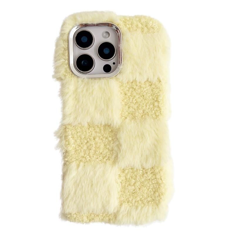 For iPhone 15 Pro Square Grid Plush TPU Phone Case(Yellow)