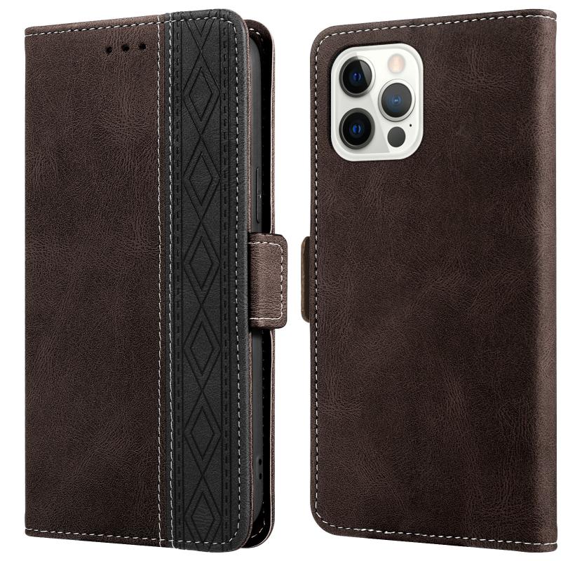 For iPhone 15 Pro Stitching Side-Magnetic RFID Leather Phone Case(Coffee)