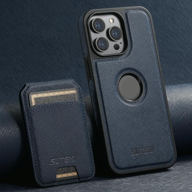 Θήκη τηλεφώνου με κάθετη θήκη καρτών MagSafe, δέρμα Suteni M2 με διασταυρούμενη υφή για iPhone 15 Pro (Καφέ) (Suteni)