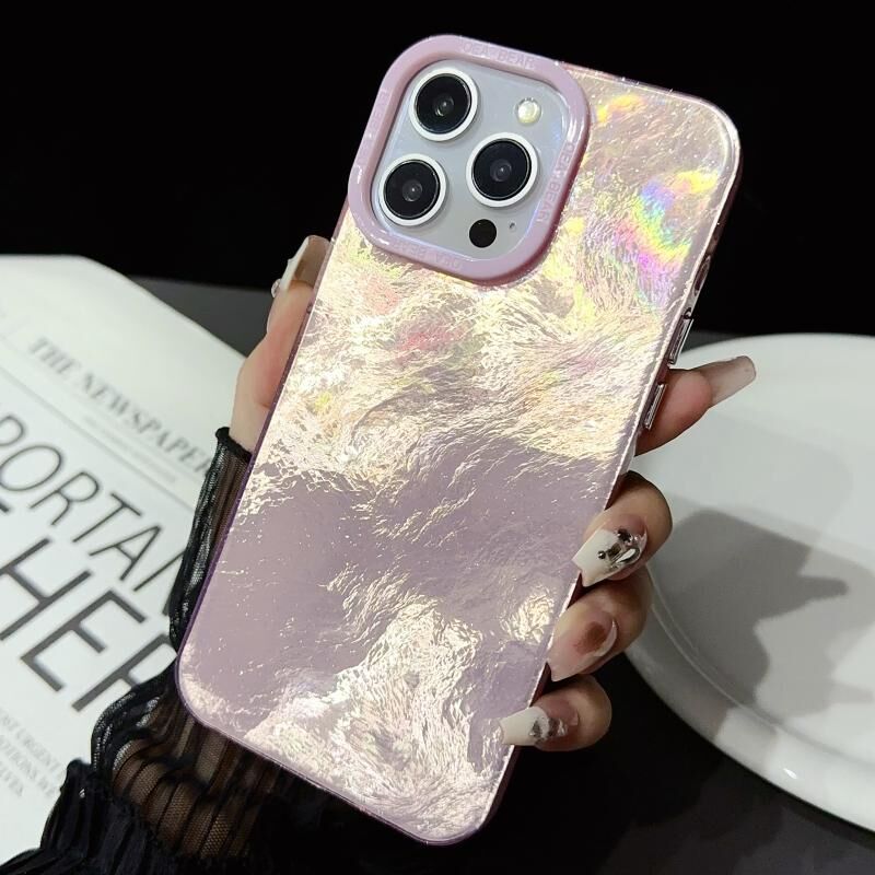 Θήκη τηλεφώνου για iPhone 15 Pro με υφή αλουμινίου, πολύχρωμο πλαίσιο φακού IMD, ακρυλικό (ρόζ)