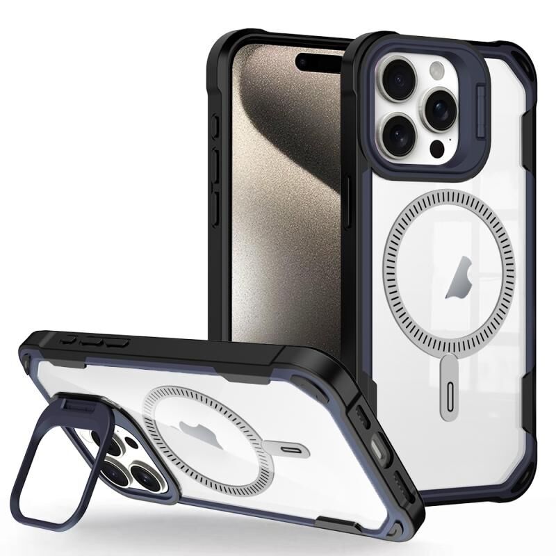 For iPhone 15 Pro Transparent Acrylic MagSafe Lens Holder Phone Case(Navy)