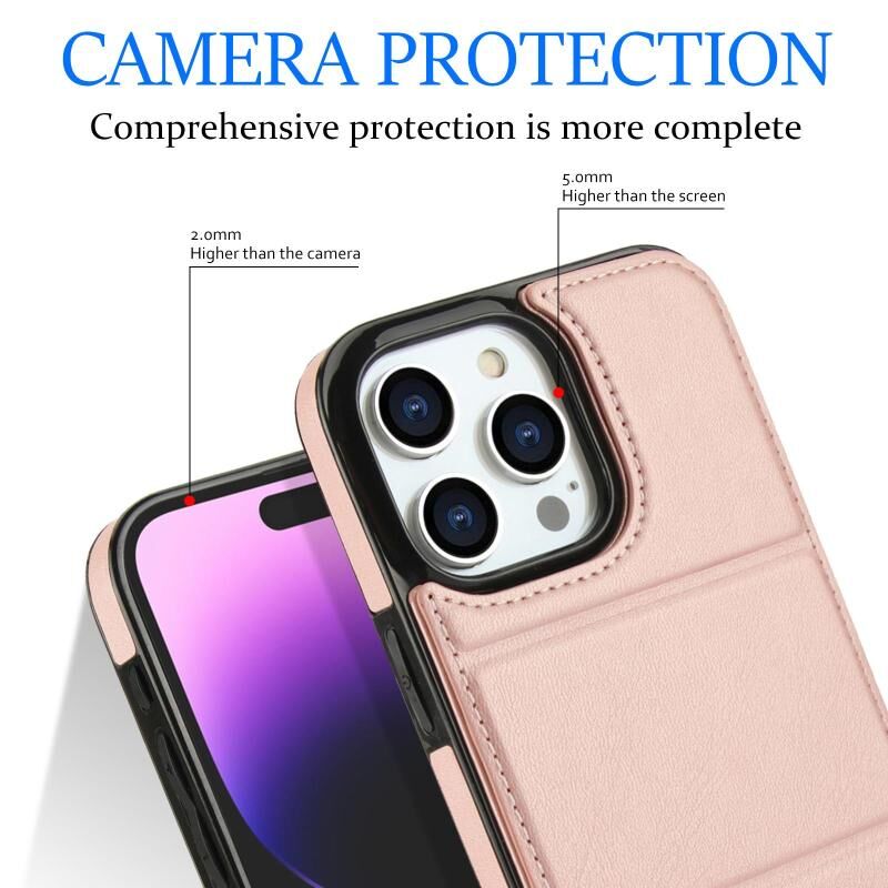 For iPhone 15 Pro Tri-fold Holder Leather Phone Case with Card Slot(Rose Gold)