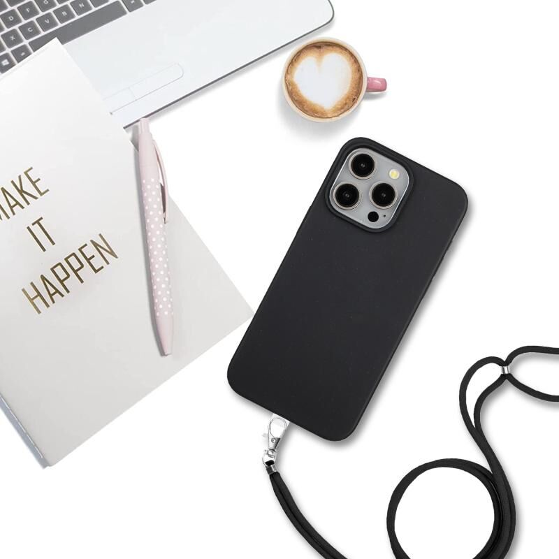 Θήκη τηλεφώνου για iPhone 15 Pro με υλικό καλαμιού σιταριού MagSafe, μαγνητική, με καλαμάκι και λουρί (Πράσινο)