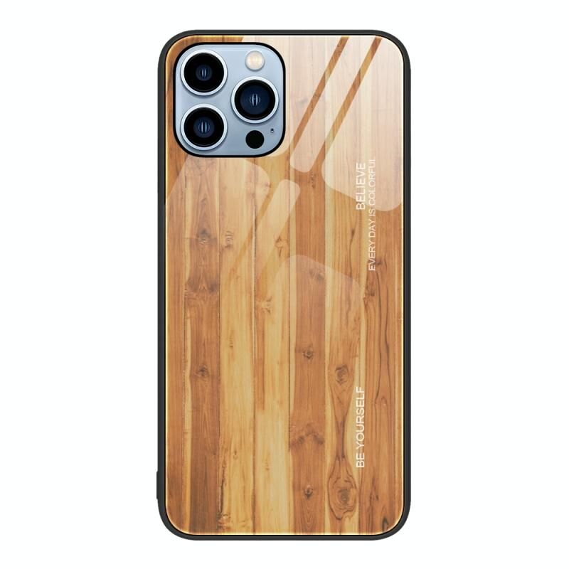 Θήκη τηλεφώνου από ξύλο και γυαλί για iPhone 15 Pro (Κίτρινο)