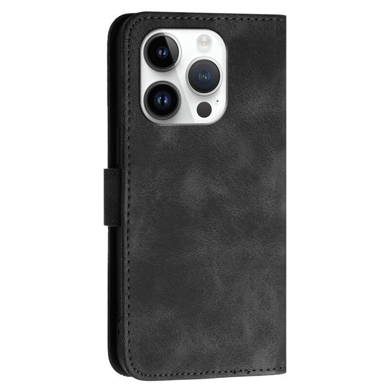 For iPhone 15 Pro YX0080 Grid Butterfly Embossed Pattern Flip Leather Phone Case with Lanyard(Black)
