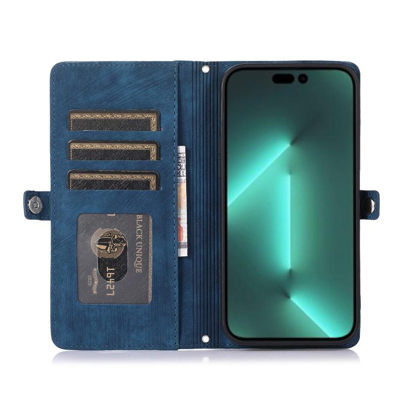 For iPhone 15 Pro Zipper Card Slot Buckle Wallet Leather Phone Case(Blue)