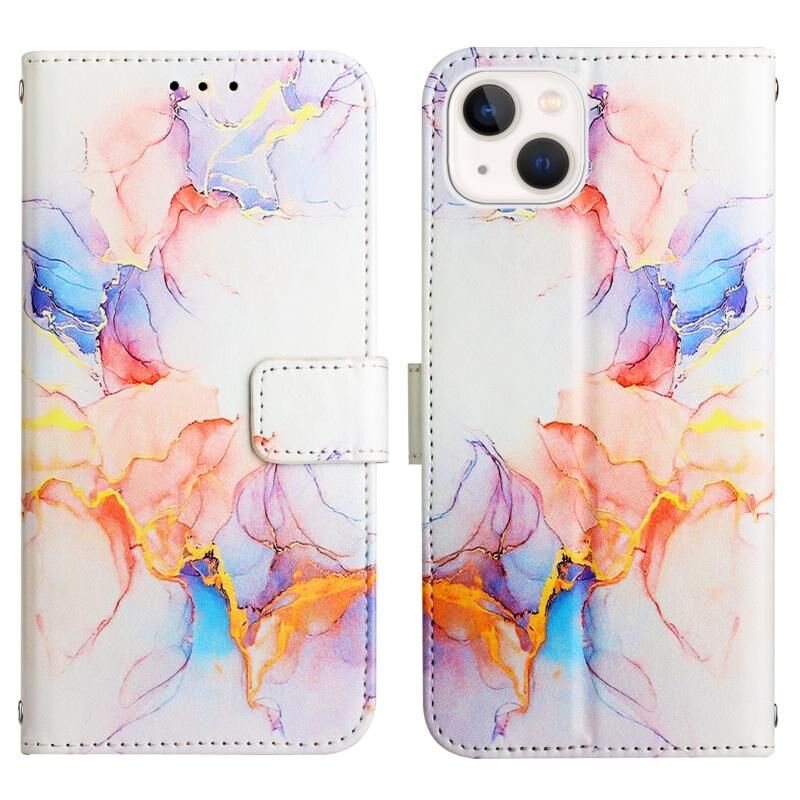 Θήκη τηλεφώνου από δέρμα με σχέδιο μάρμαρου και πτυσσόμενο καπάκι για iPhone 15 PT003 (Λευκό-Μωβ)