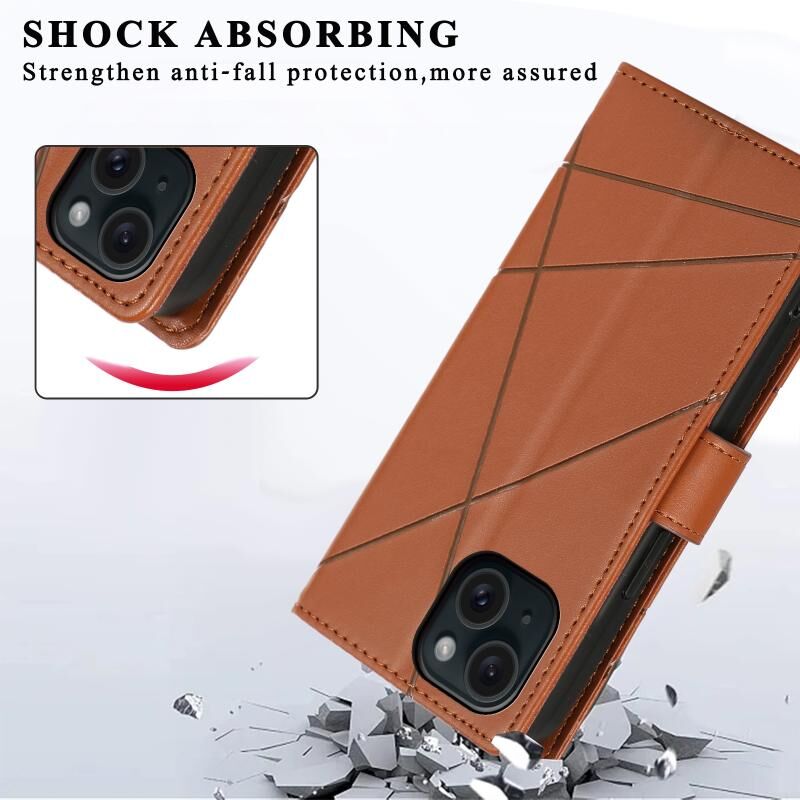 Θήκη τηλεφώνου για iPhone 15 από γνήσιο δέρμα PU με ανάγλυφη υφή και λεπτομέρεια γραμμής (Μαύρο)