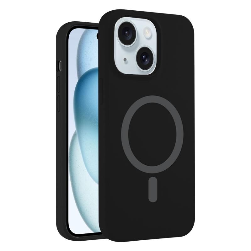 For iPhone 15 Pure Color Liquid Silicone MagSafe Phone Case(Black)