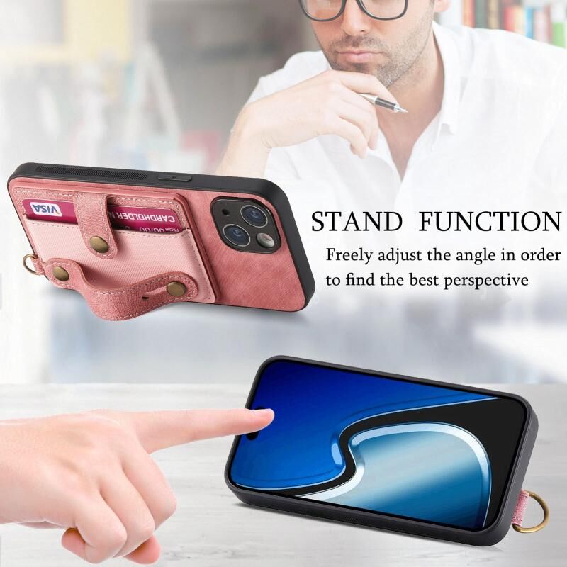 For iPhone 15 Retro Cross Wristband Wallet Leather Back Phone Case(Pink)