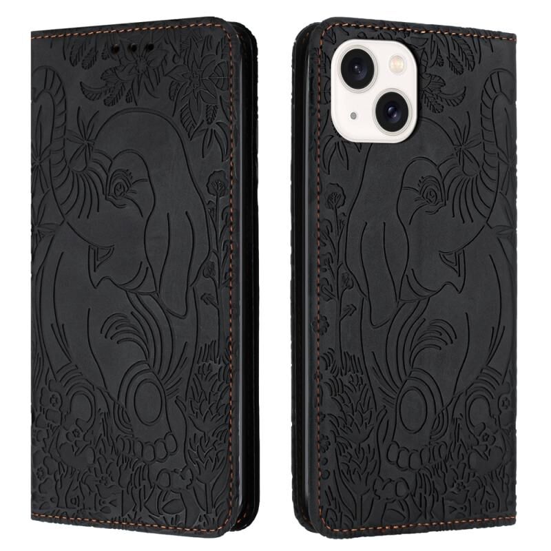Θήκη τηλεφώνου από δέρμα με ανάγλυφο ρετρό ελέφαντα για iPhone 15 (Μπλε)
