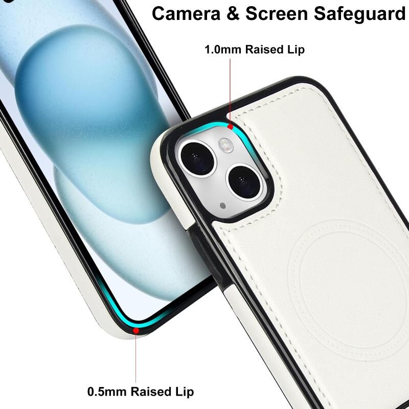 Θήκη τηλεφώνου για iPhone 15 από ανακυκλωμένο δέρμα με αόρατο στήριγμα και MagSafe (Λευκό)