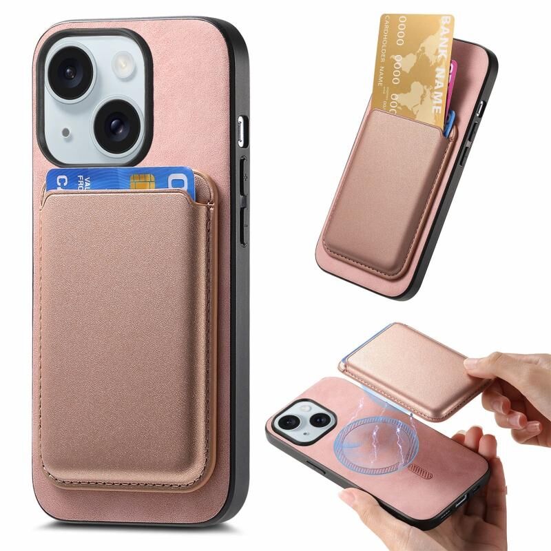 Θήκη κινητού τηλεφώνου για iPhone 15 Retro MagSafe, τσάντα κάρτας από PU, πίσω κάλυμμα (ρόζ)