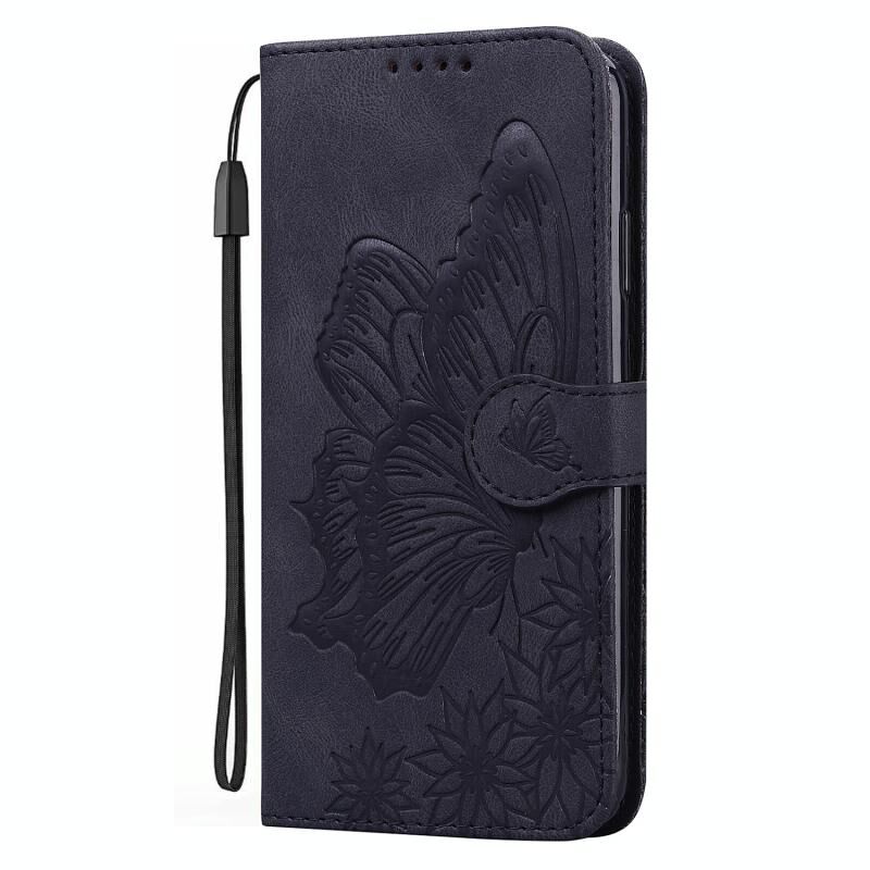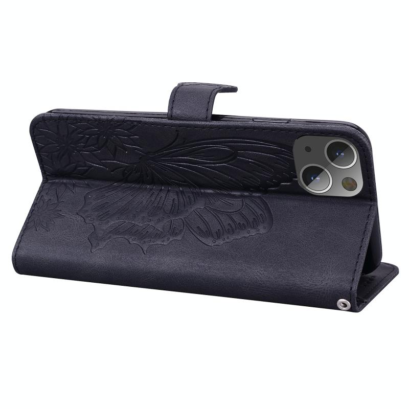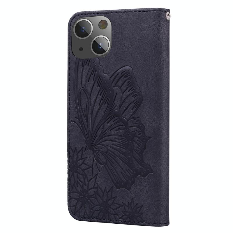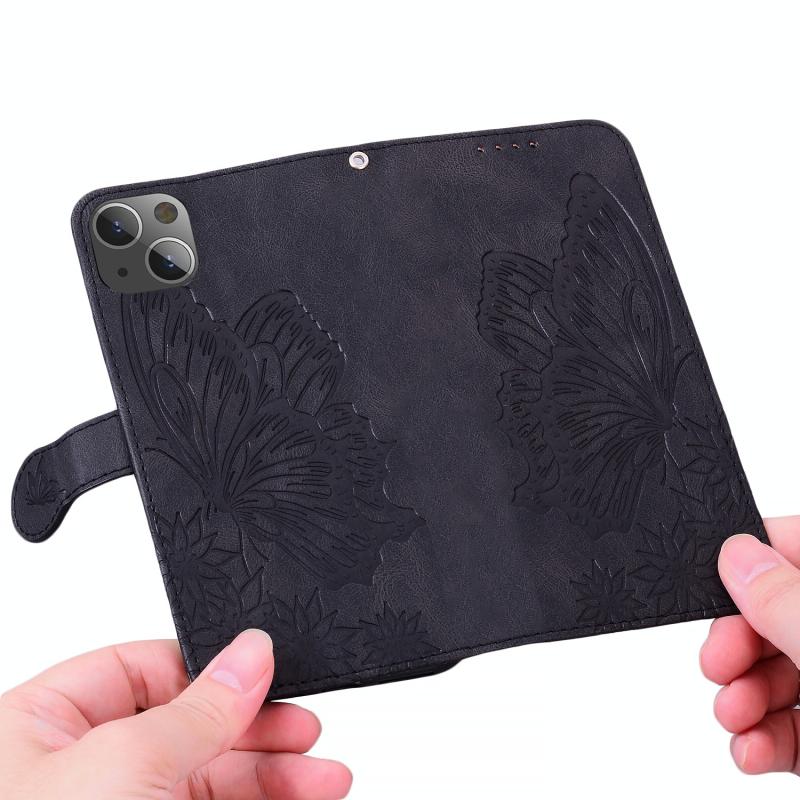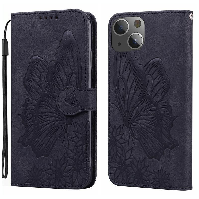 For iPhone 15 Retro Skin Feel Butterflies Embossing Leather Phone Case(Black)