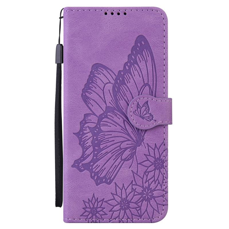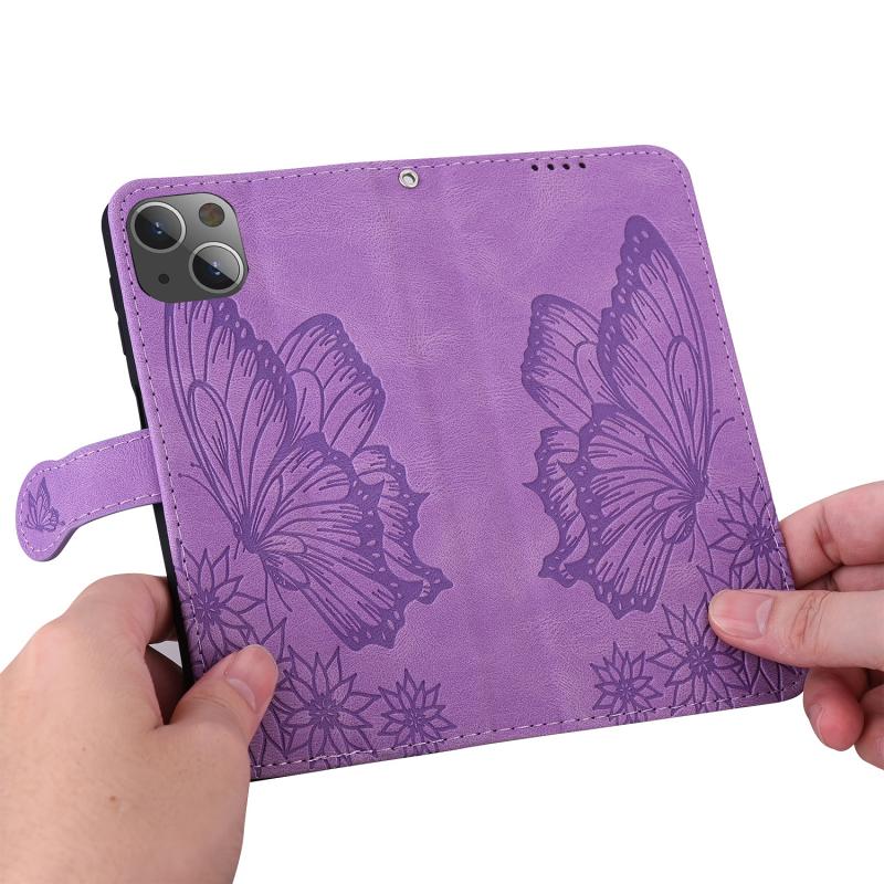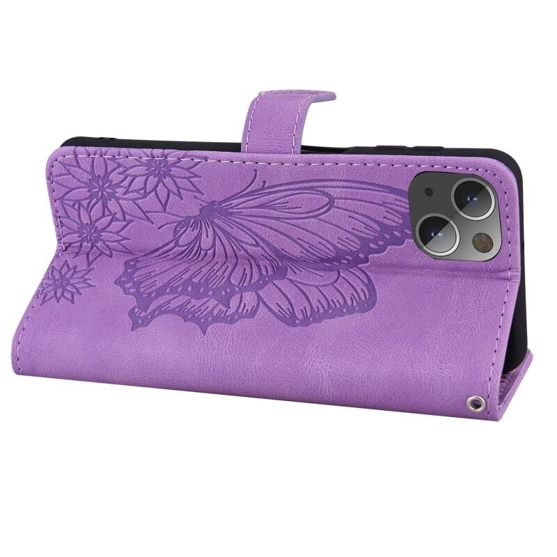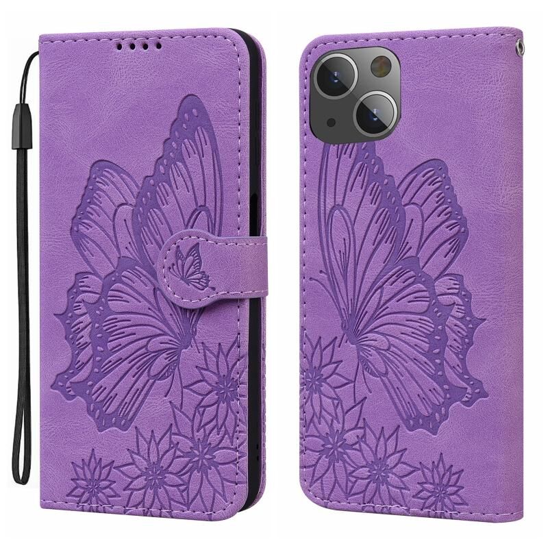For iPhone 15 Retro Skin Feel Butterflies Embossing Leather Phone Case(Purple)