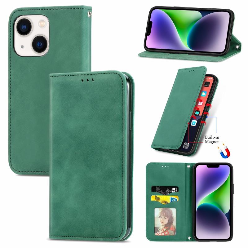 For iPhone 15 Retro Skin Feel Magnetic Flip Leather Phone Case(Green)