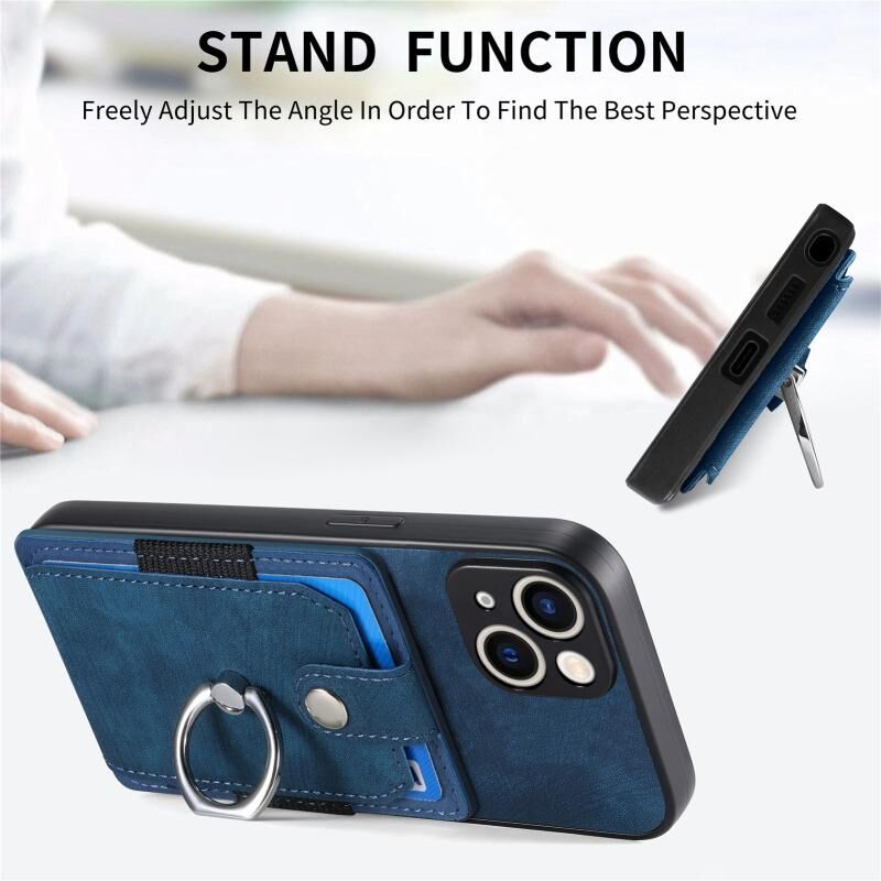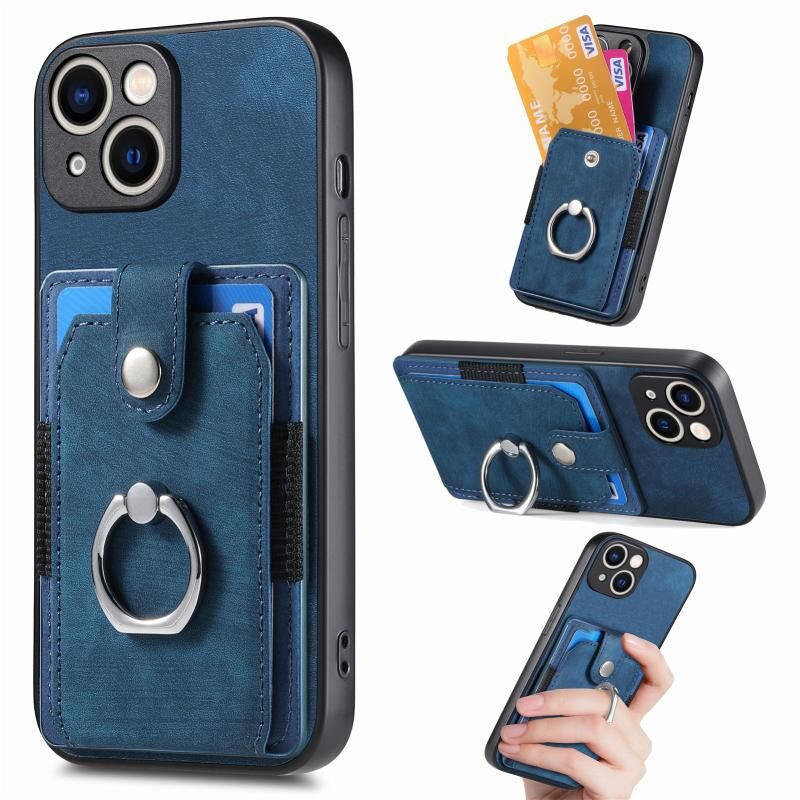 Θήκη τηλεφώνου με κάρτες και δακτύλιο για iPhone 15, με ρετρό υφή (Μαύρο)