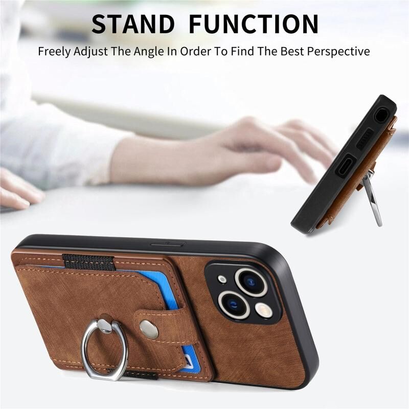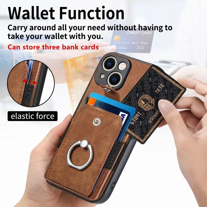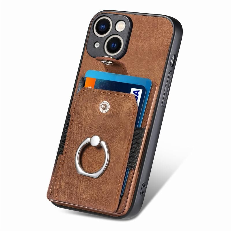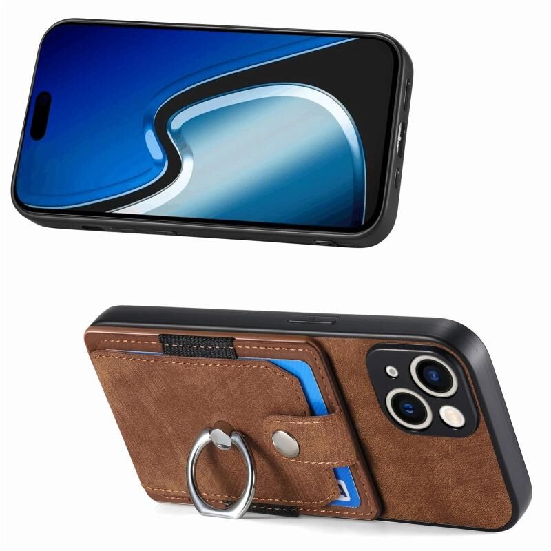 Θήκη τηλεφώνου με κάρτες και δακτύλιο για iPhone 15, με ρετρό υφή (Καφέ)