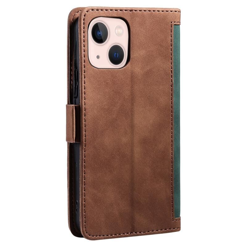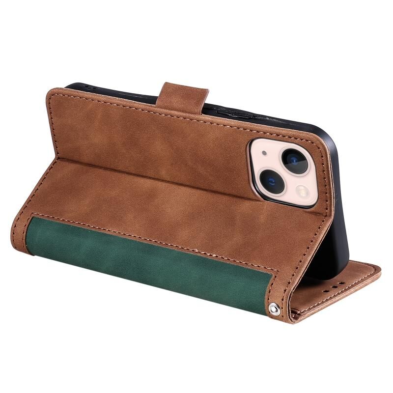 For iPhone 15 Retro Splicing Horizontal Flip Leather Phone Case(Green)