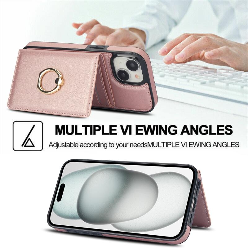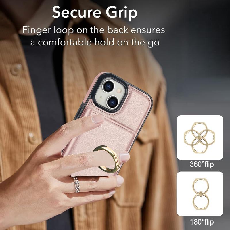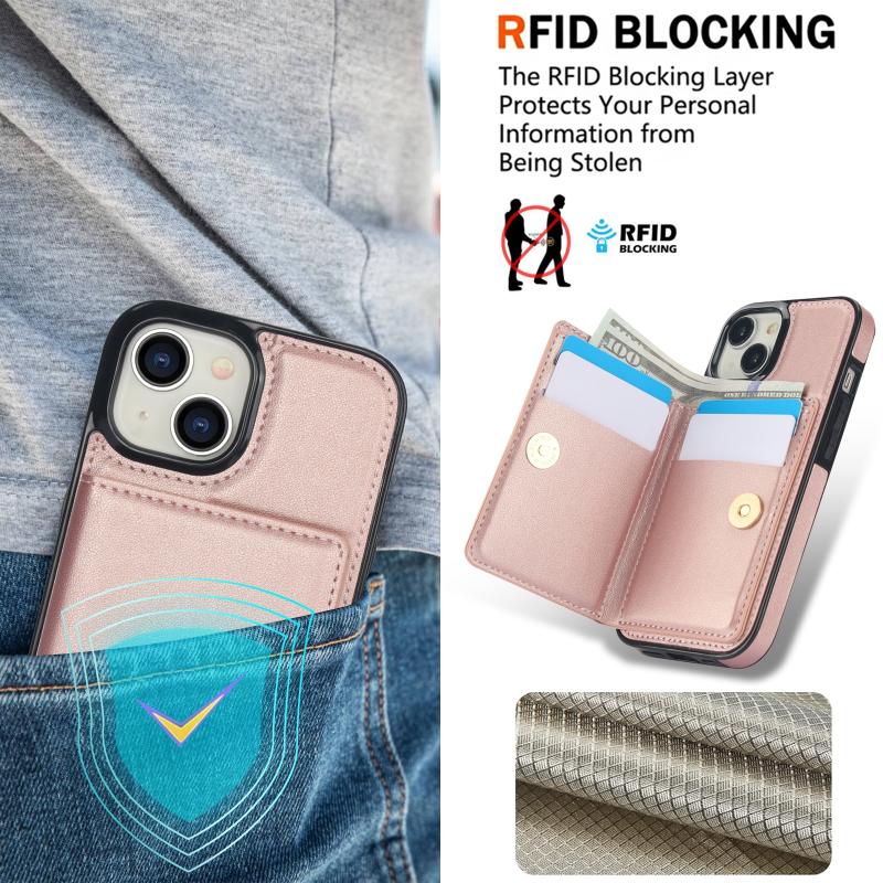 For iPhone 15 RFID Anti-theft Card Ring Holder Phone Case(Rose Gold)