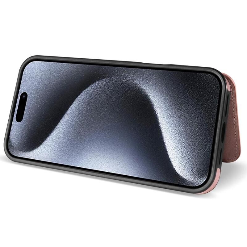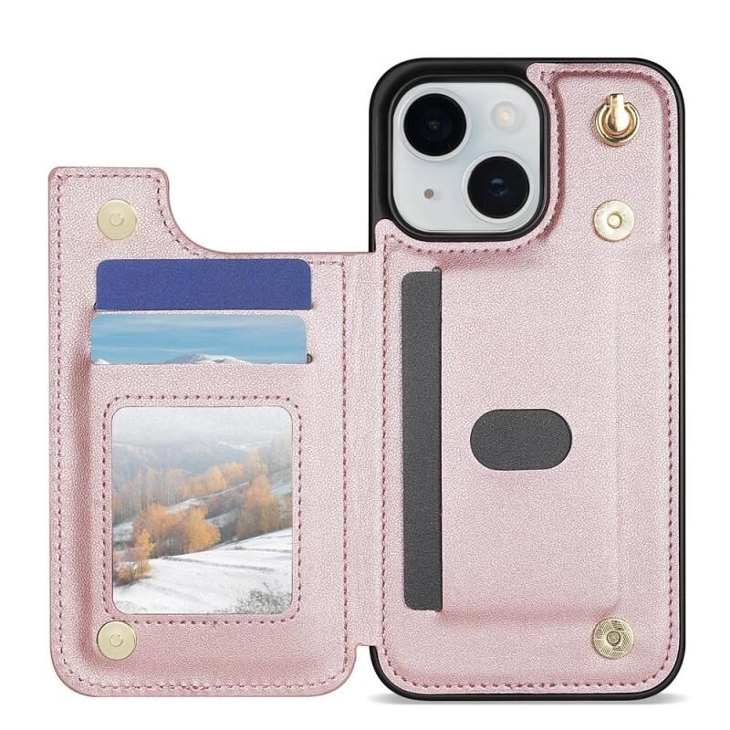 Θήκη τηλεφώνου για iPhone 15 με ρομβικό διπλό άγκιστρο για κάρτες και λουρί (Ροζ χρυσός)