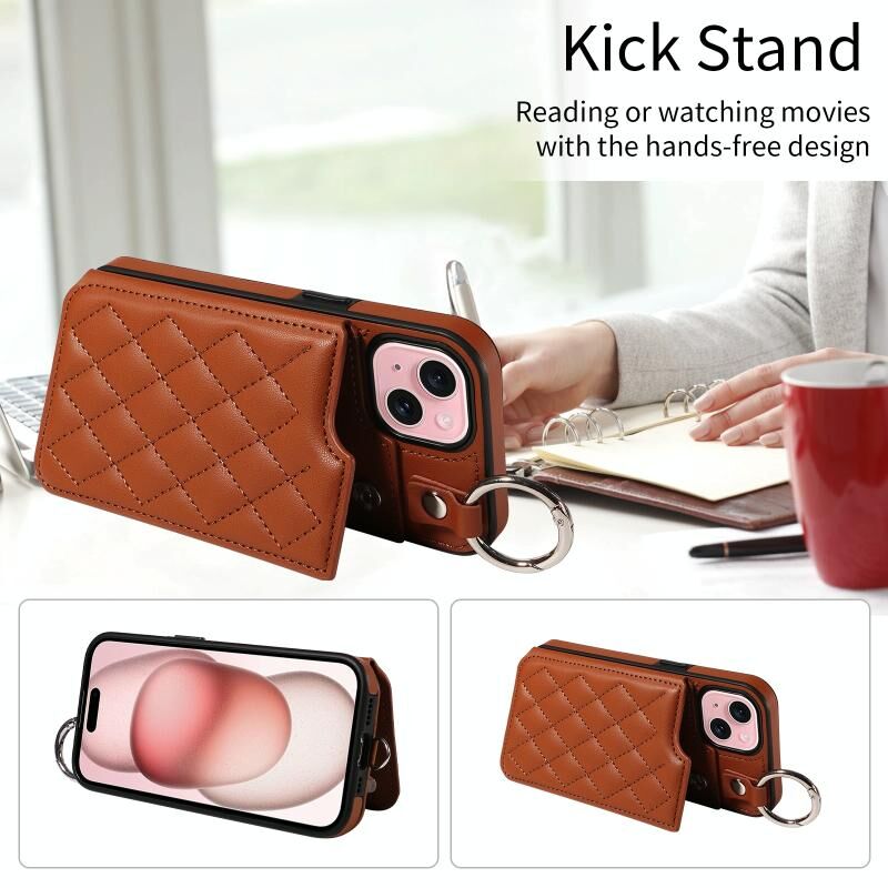 Θήκη τηλεφώνου για iPhone 15 με υφή ρόμβου και κοντό κορδόνι (Μωβ)