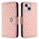For iPhone 15 Rhombic Texture Flip Leather Phone Case with Lanyard(Coral Pink)