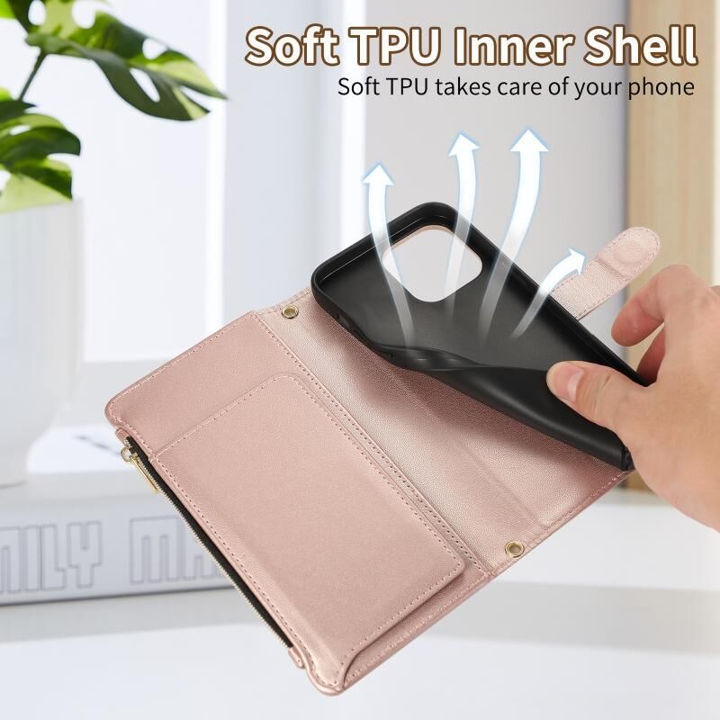 5. Λειτουργία πολλαπλών καρτών και πορτοφολιού: Πολλαπλές υποδοχές καρτών και τσέπες πορτοφολιού με φερμουάρ, διαμερίσματα για μετρητά μπορούν να αποθηκεύσουν τις πιστωτικές σας κάρτες και τα καθημερινά μικρά χαρτονομίσματα.