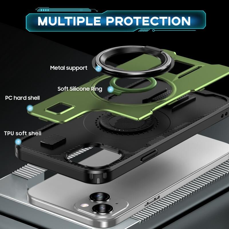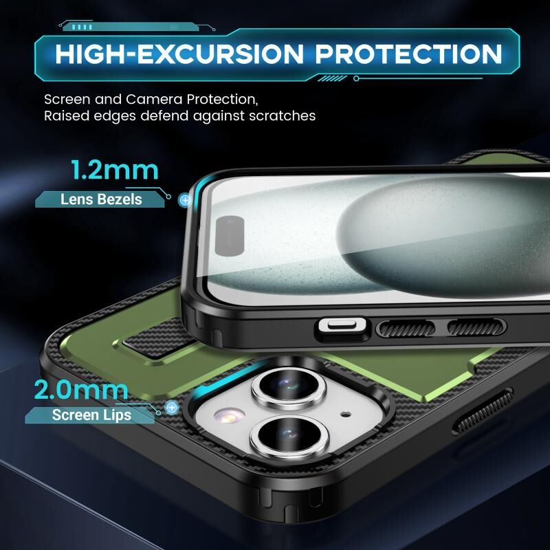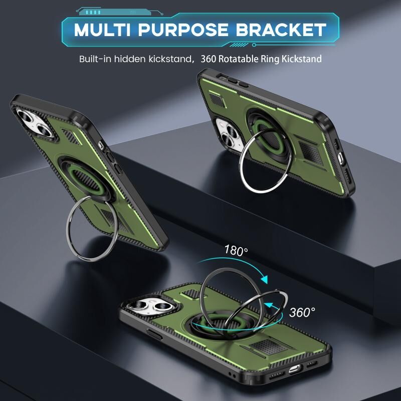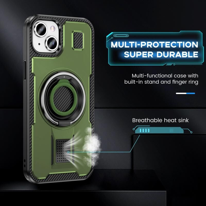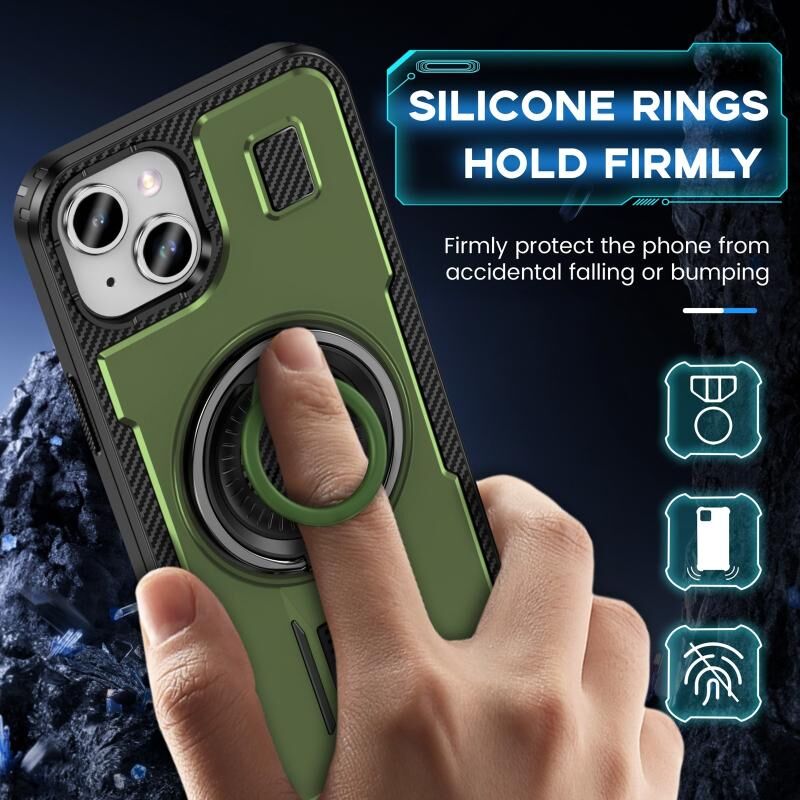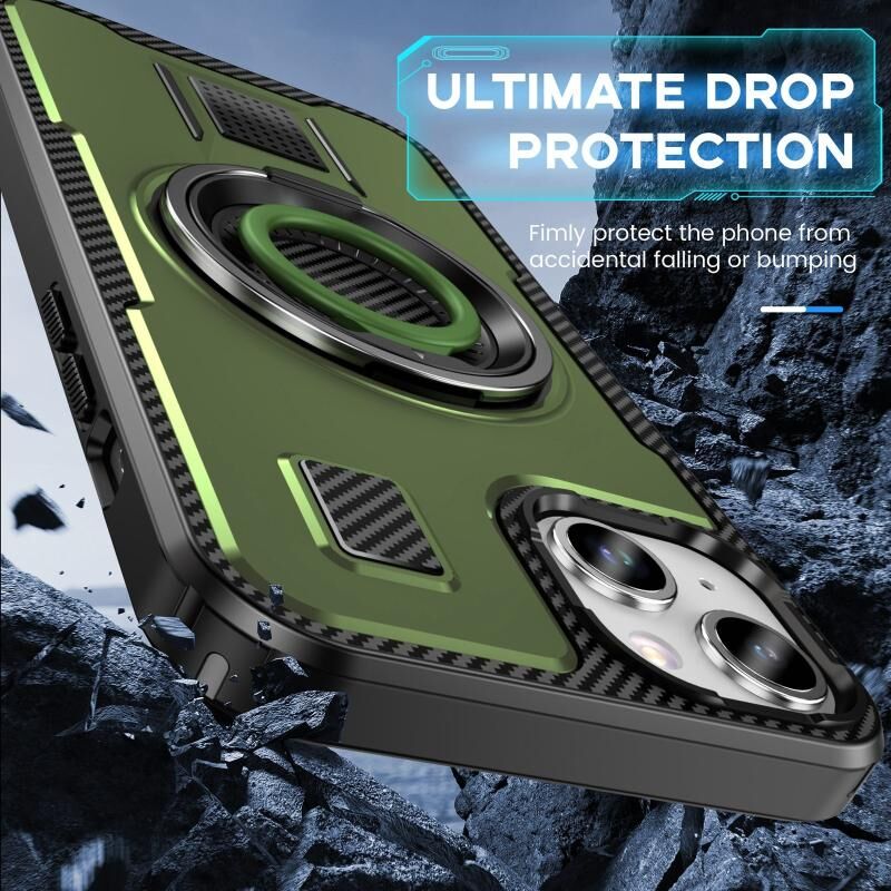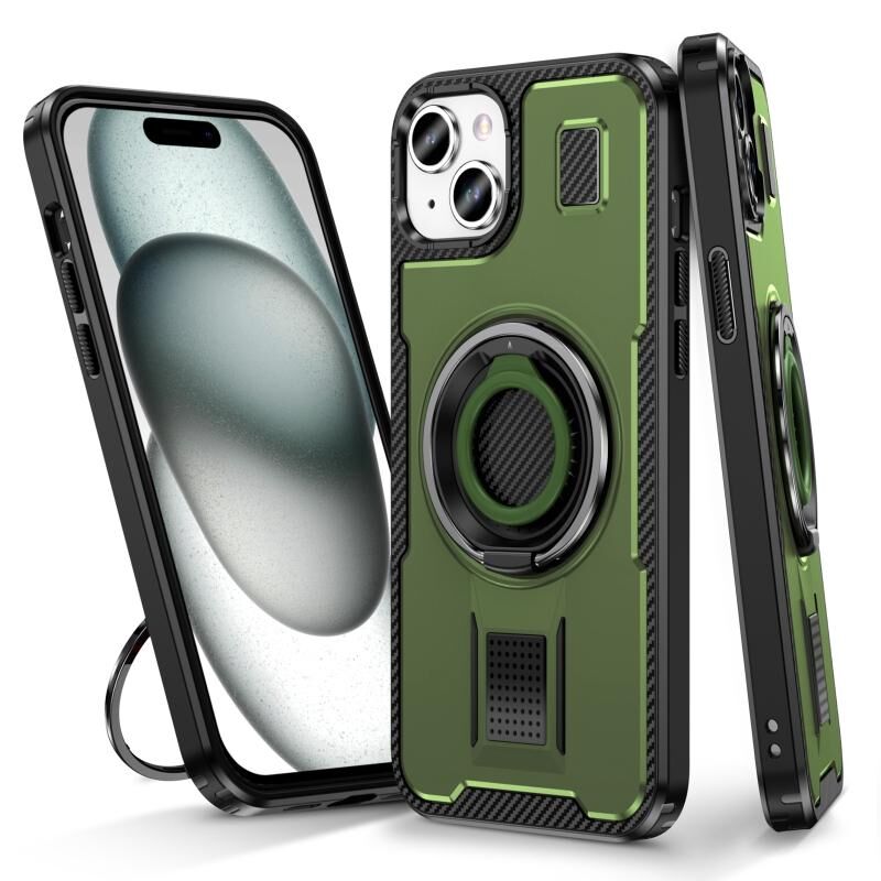 Θήκη τηλεφώνου για iPhone 15 με δακτύλιο, υβριδική από ανθρακονήματα PC και TPU (Χακί πράσινο)