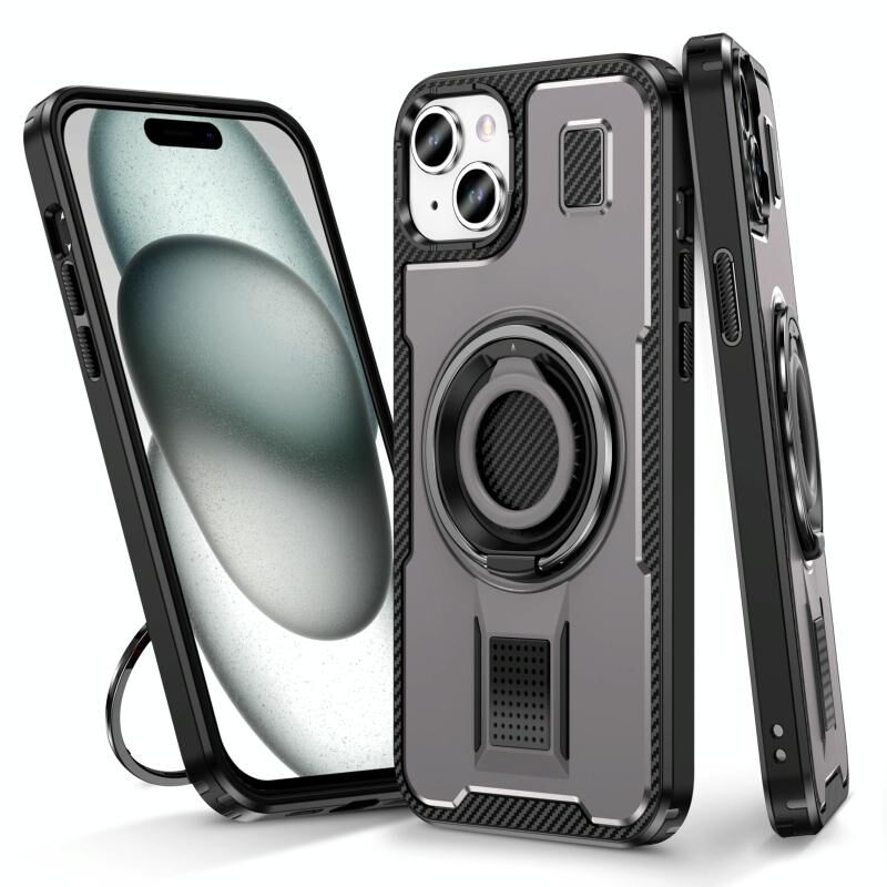 Θήκη τηλεφώνου για iPhone 15 με δακτύλιο, υβριδική από ανθρακονήματα PC και TPU (Γκρι)