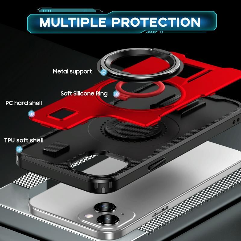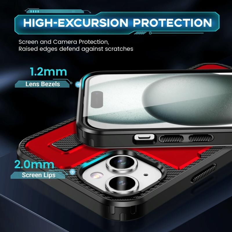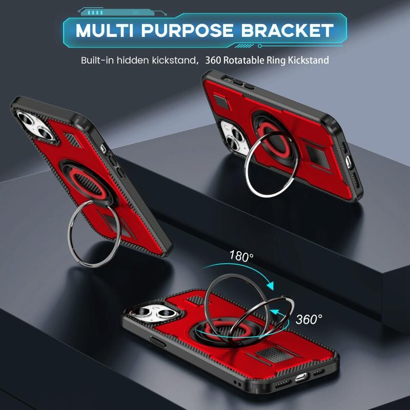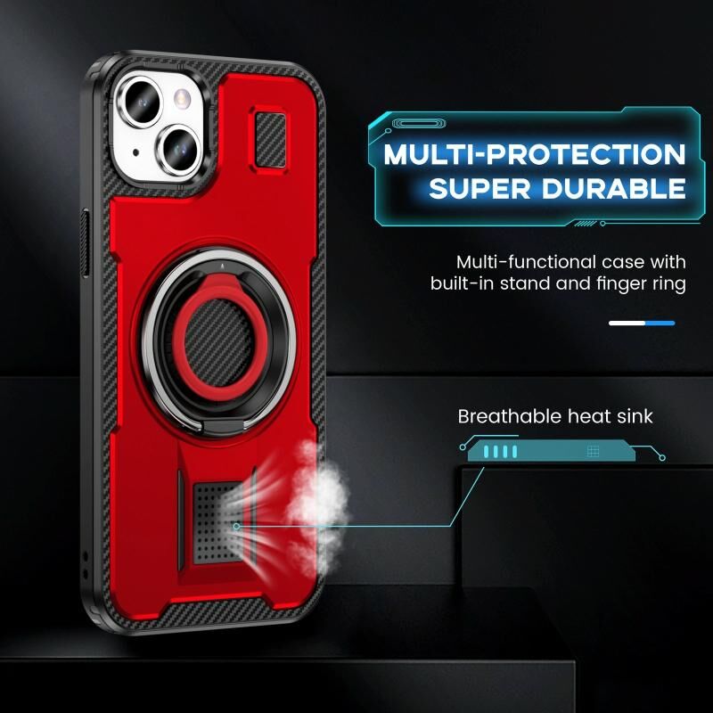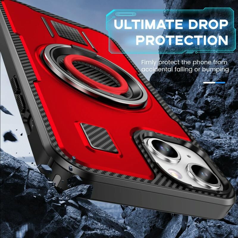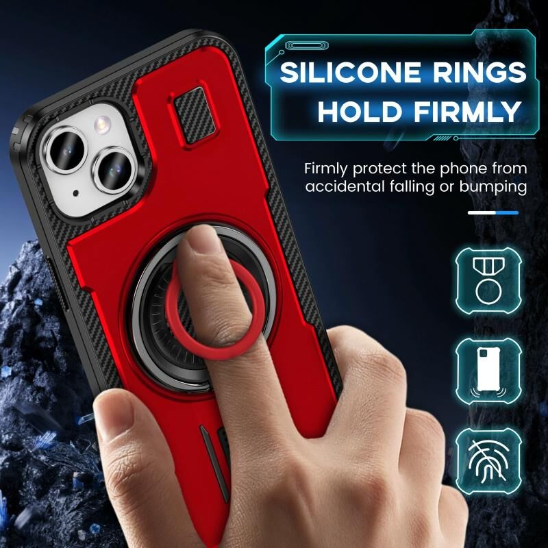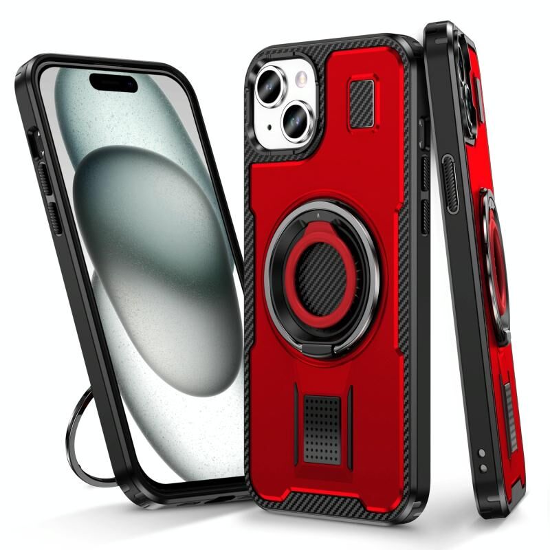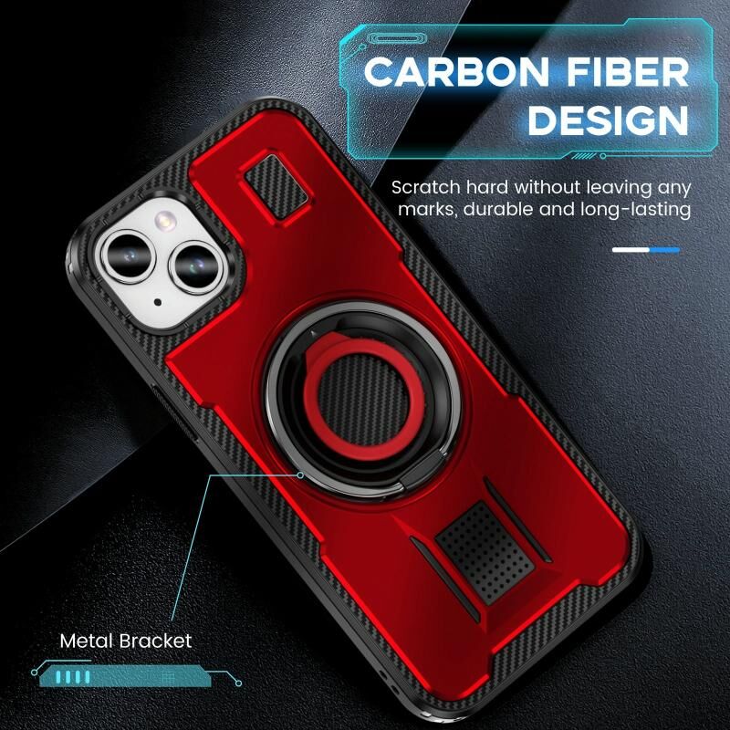 Θήκη τηλεφώνου για iPhone 15 με δακτύλιο, υβριδική από ανθρακονήματα PC και TPU (Κόκκινο)