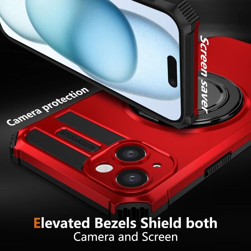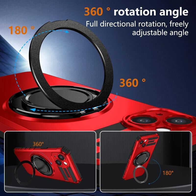 For iPhone 15 Rotating Magnetic Holder Phone Case(Red)