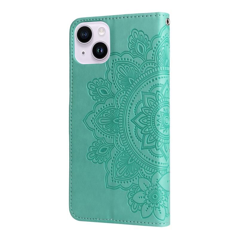 Θήκη τηλεφώνου από δέρμα με ανάγλυφα επτά πέταλα για iPhone 15 (Χρυσαφί Ροζ)