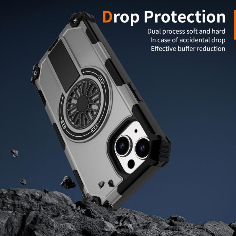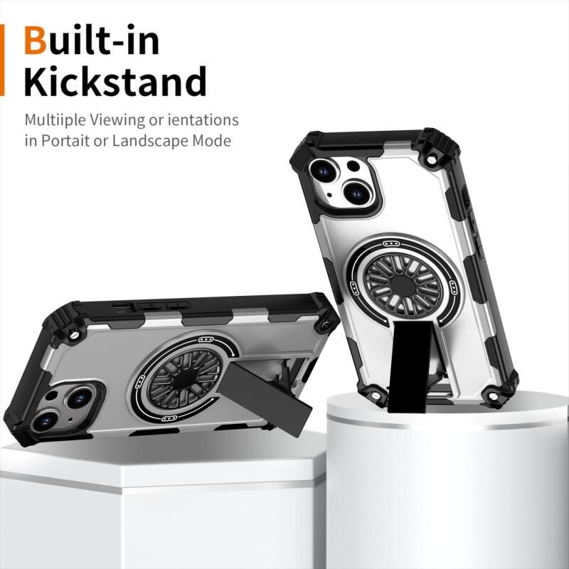 For iPhone 15 Shockproof Kickstand Metallic Shaft MagSafe Phone Case(Silver)