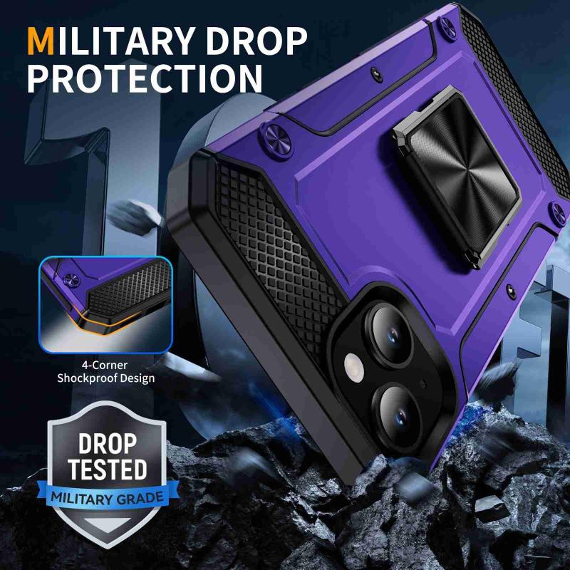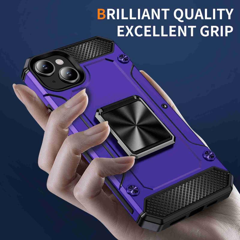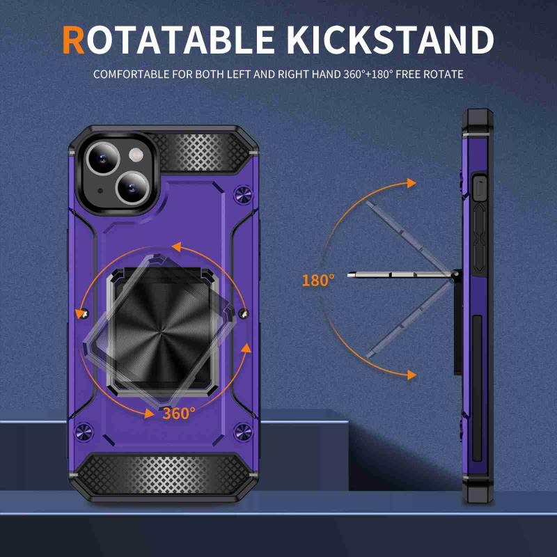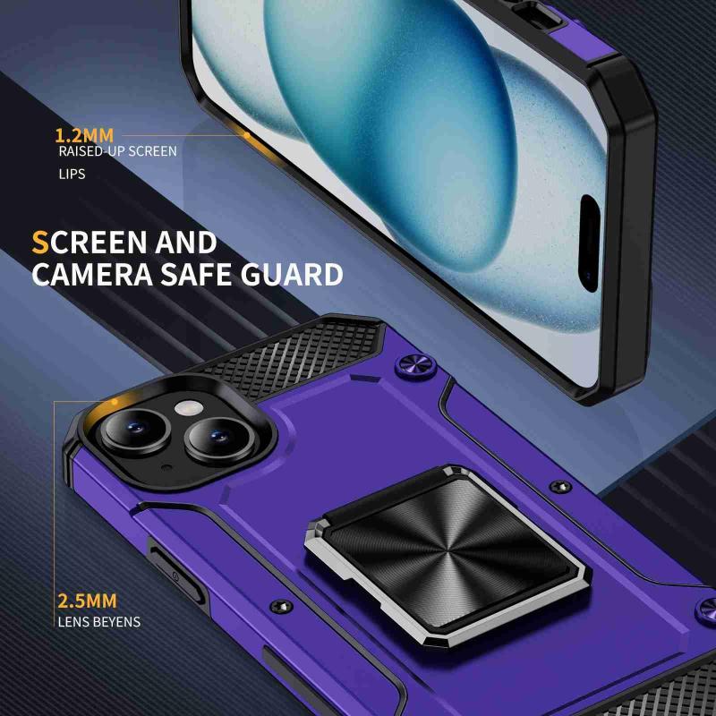 For iPhone 15 Shockproof Metal Holder Phone Case(Purple)