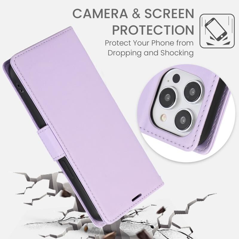 Θήκη τηλεφώνου από δέρμα με πλευρική αγκράφα, αντι-κλοπής RFID για iPhone 15 (ανοιχτό μωβ)