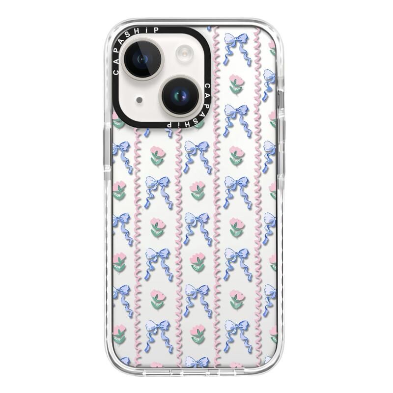 For iPhone 15 Simple Illustration Pattern Full Coverage Phone Case(Bowknot Flowers)