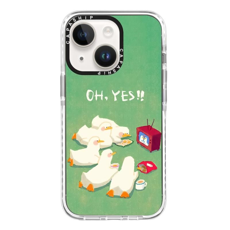 Θήκη τηλεφώνου πλήρους κάλυψης για iPhone 15 με απλό εικονογραφημένο σχέδιο (Πάπια που βλέπει τηλεόραση)