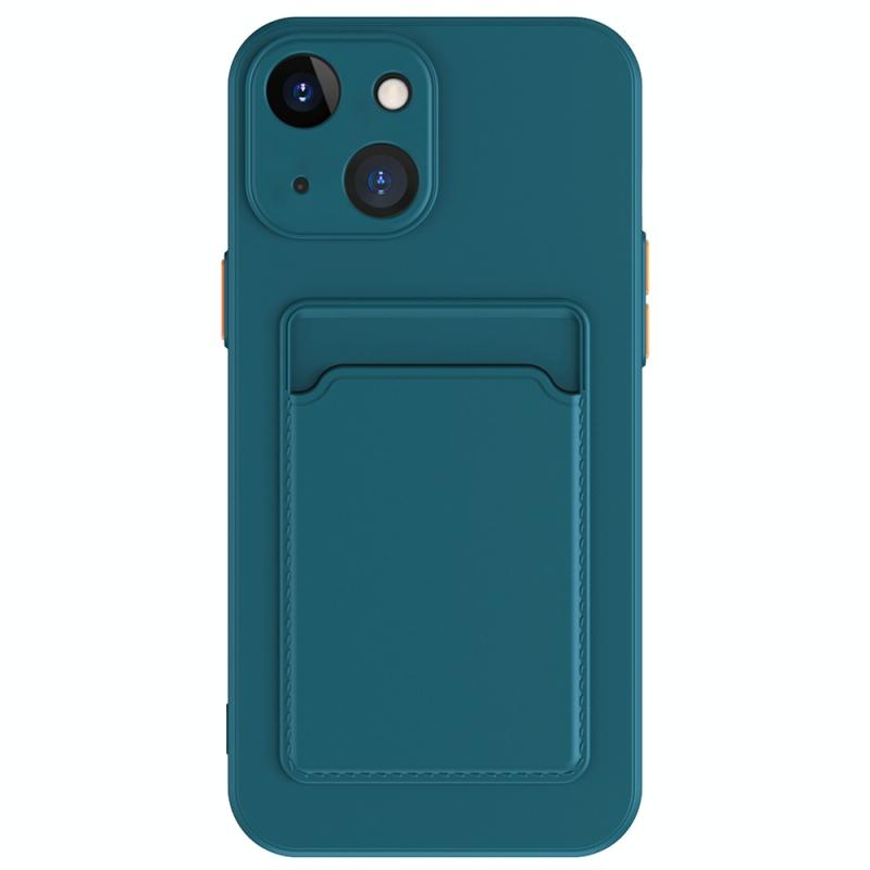 For iPhone 15 Skin Feel Card Contrast Color Button TPU Phone Case(Dark Green)