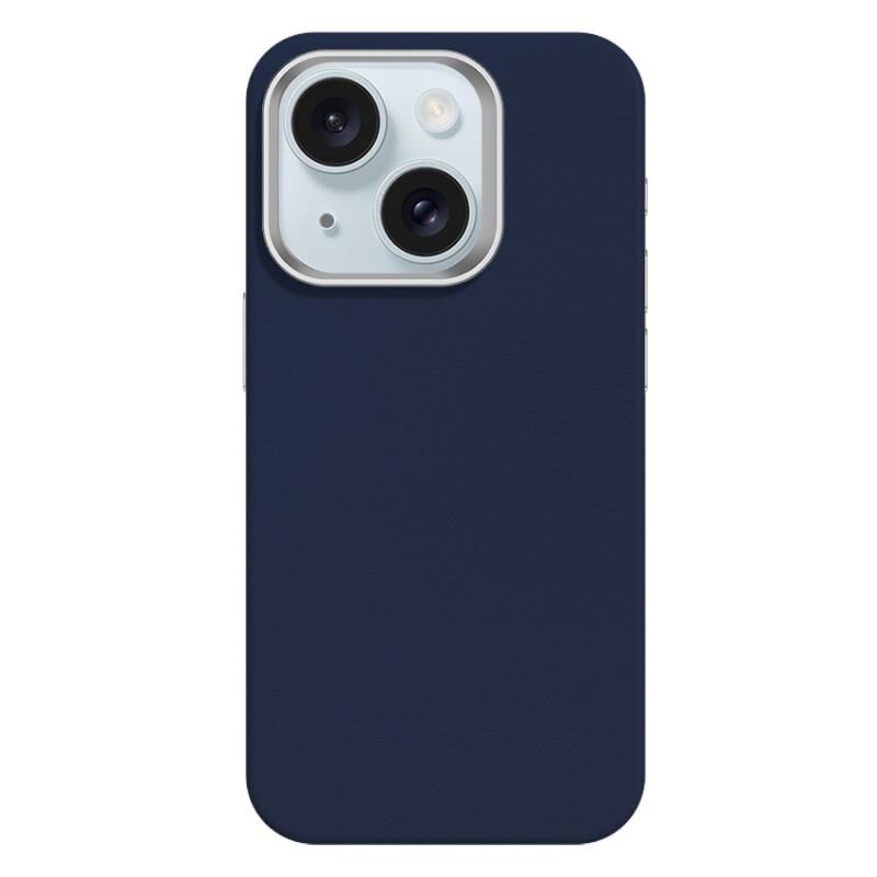 Θήκη για iPhone 15 με υφή λεπτού δέρματος, μεταλλικό πλαίσιο φακού και MagSafe (Βιολετί)