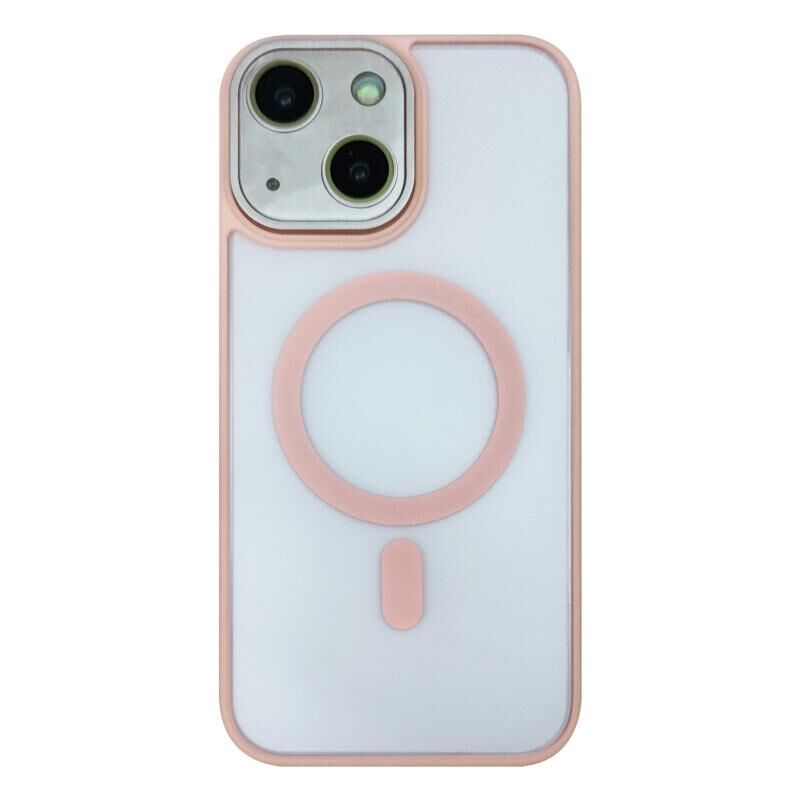 Θήκη τηλεφώνου MagSafe για iPhone 15 με αίσθηση δέρματος και προστατευτική μεμβράνη φακού (ρόζ)