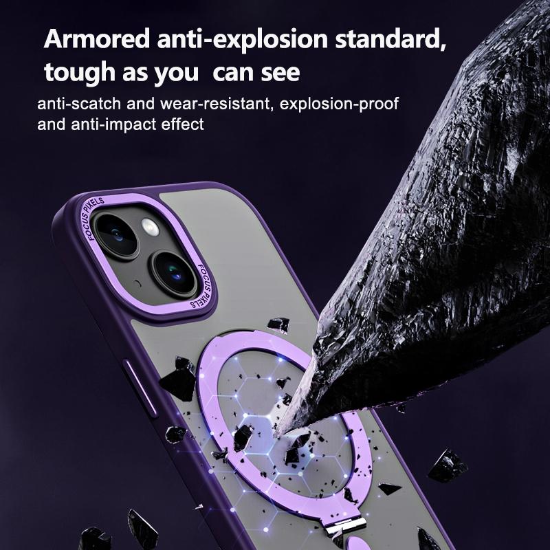 For iPhone 15 Skin Feel MagSafe Shockproof Phone Case with Holder(Purple)