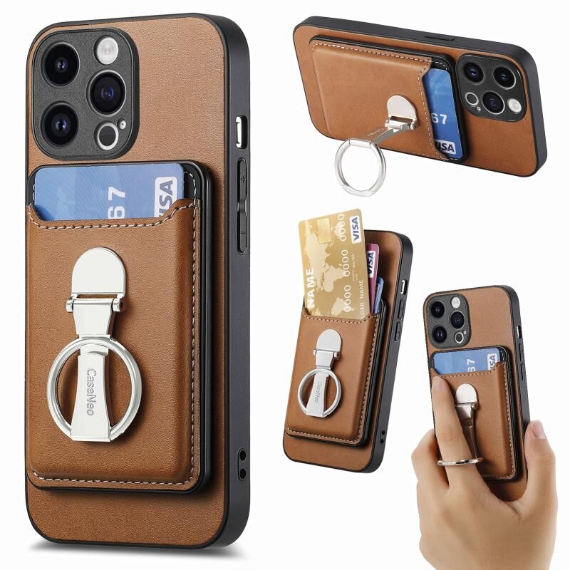 Θήκη τηλεφώνου με μαγνητική βάση, δακτύλιο και θήκη καρτών για iPhone 15 (Μαύρο)