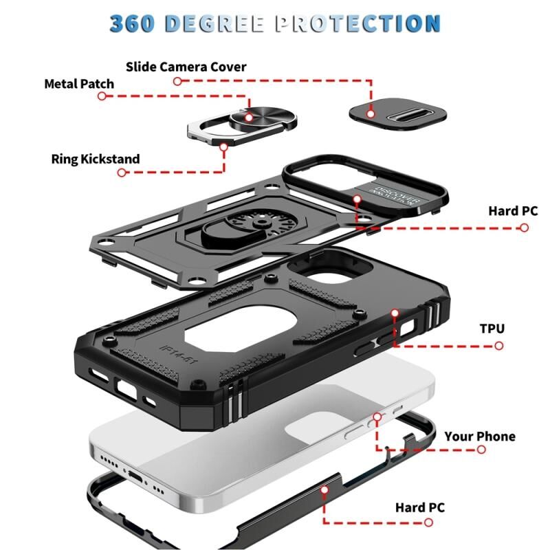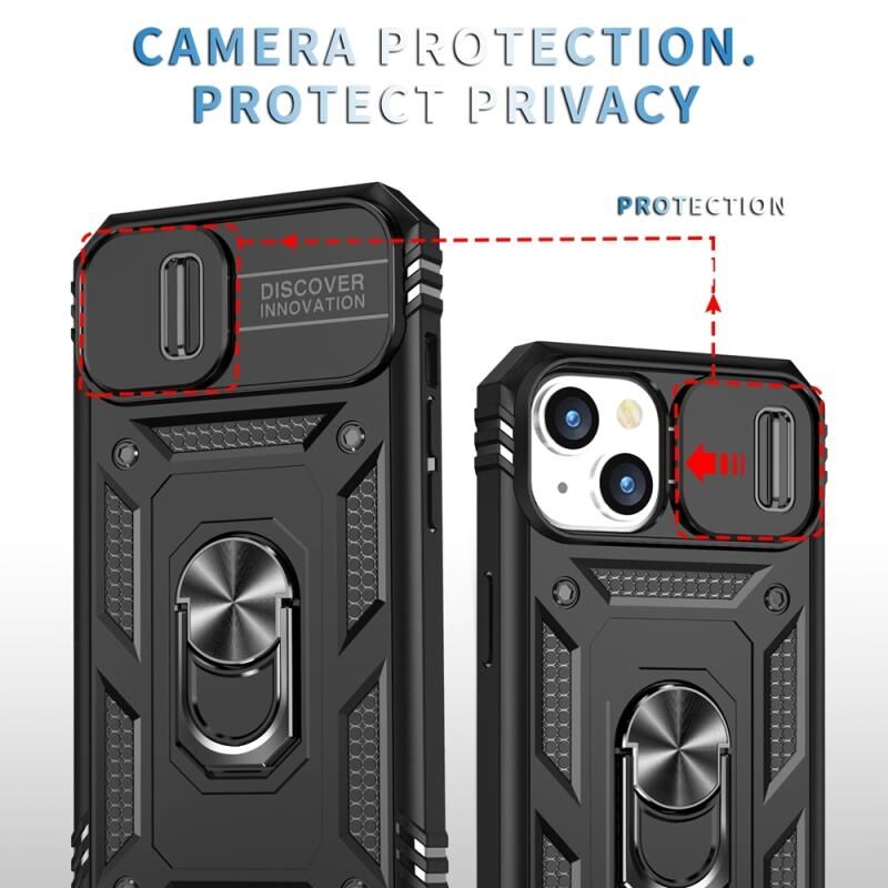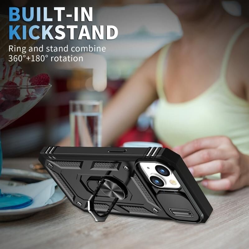 Θήκη τηλεφώνου με συρόμενο προστατευτικό κάμερας για iPhone 15 (Λευκό+Μαύρο)