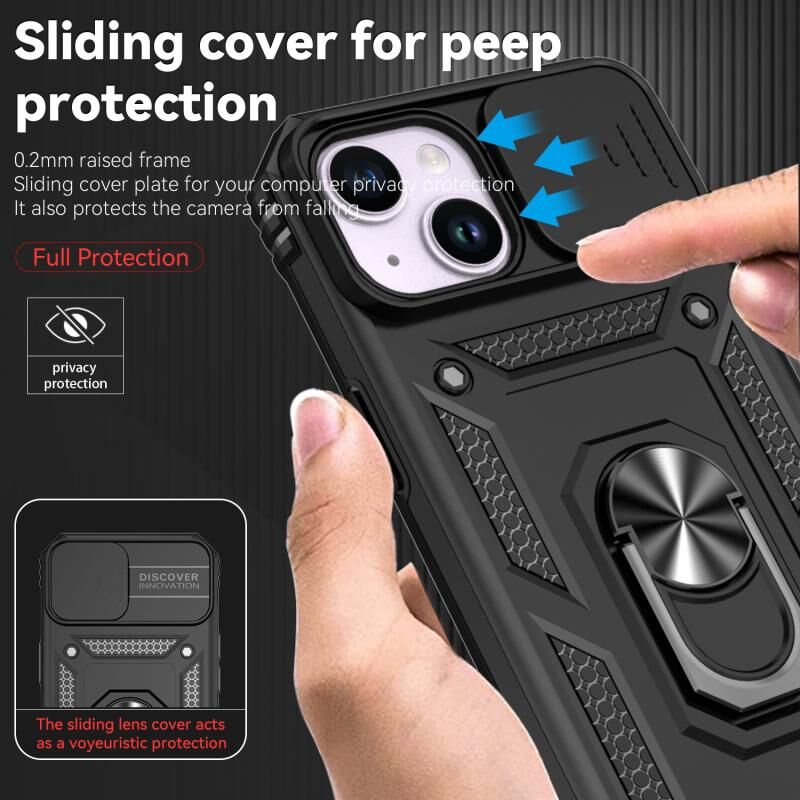 Θήκη τηλεφώνου με συρόμενο προστατευτικό κάμερας για iPhone 15 (Μαύρο)