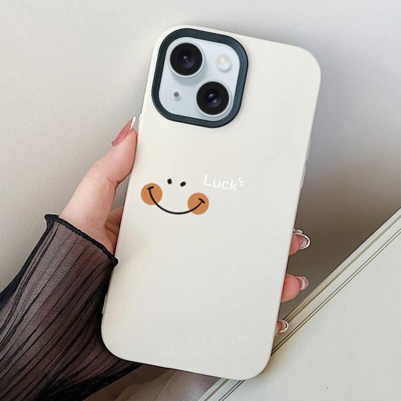 For iPhone 15 Smile Face PC Hybrid TPU Phone Case(White)
